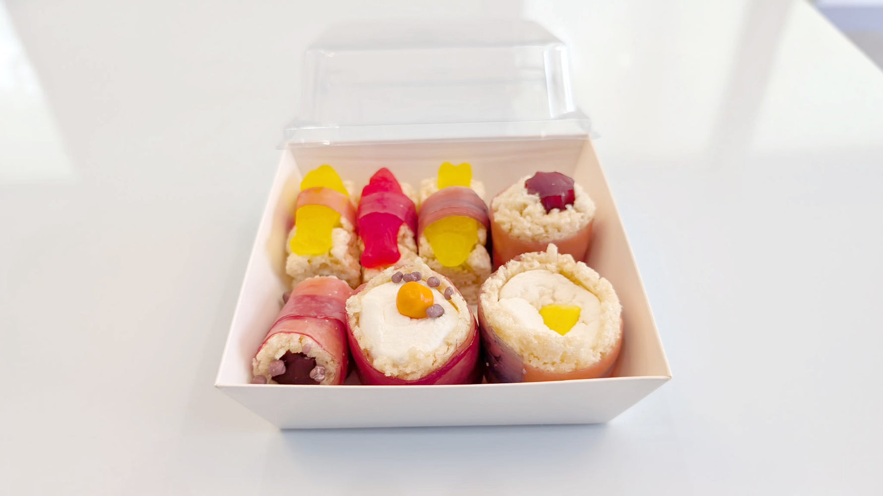 Create edible "sushi" from gummy candies, marshmallows, and more. Candy sushi is a fun and creative edible craft that uses sweets to mimic the look of real sushi. Kids can roll Rice Krispie treats into shapes and top them with gummy worms, licorice, or fruit roll-ups to resemble sushi rolls and nigiri. It’s a playful way to explore food art and a hit at parties or themed events.