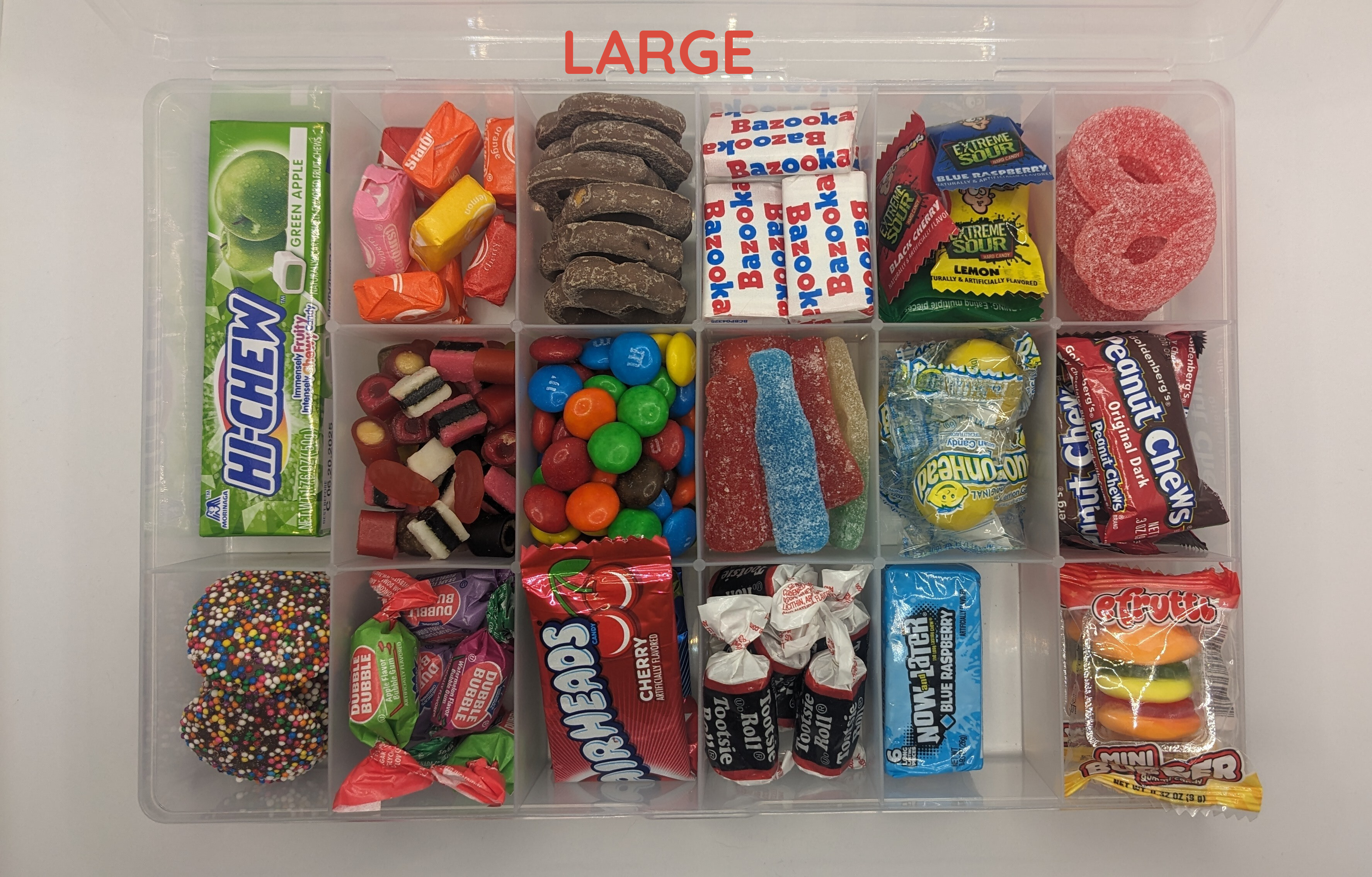 Elevate your snacking experience with our candy snackle box! This fun and portable organizer is filled with an irresistible assortment of colorful candies - from gummies and chocolates to hard candies and lollipops. Include all your favorites! Ideal for road trips, parties, movie nights, or as a unique gift for candy lovers, the candy snackle box offers a sweet surprise with every bite.